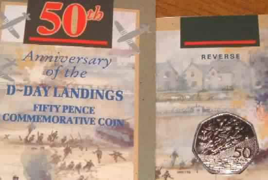 | 1994 50 Pence Coin 50th Anniversary of D-Day Landings Normandy WWII (Allied Invasion of France) Copper Nickel in folder |